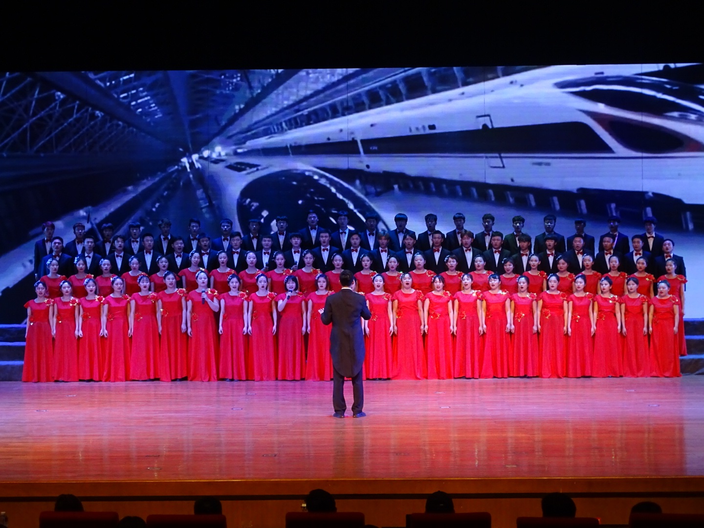 我院师生大合唱共计91人,其中老师10人,学生81人。比赛过程中,我院师生组合热情洋溢、从容自信;歌声和谐悠扬,气势磅礴;指挥员手势准确,富有激情,师生们用慷慨激昂的歌声唱响报国的壮志。