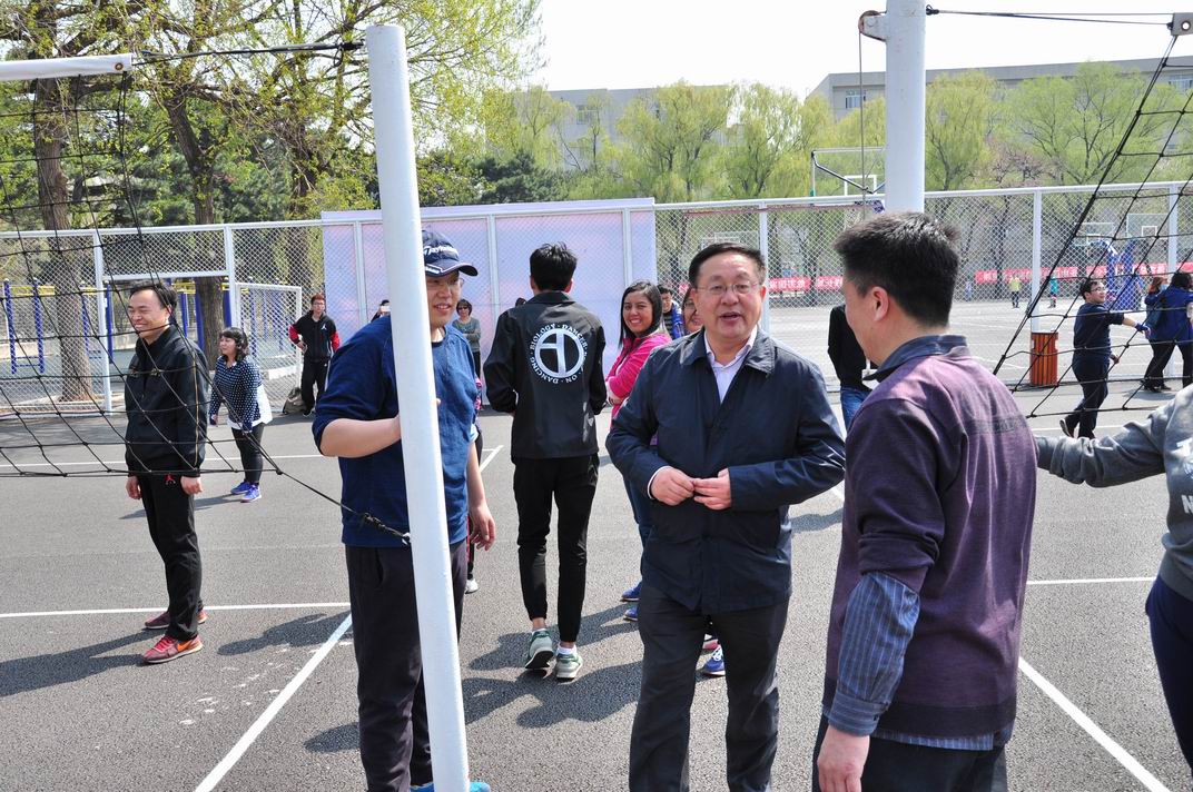 午后的排球场人头攒动,有热情饱满的参赛队员,也有积极呐喊的教工啦啦队,欢声笑语不时引来路过的老师和同学们驻足观看。随着一声声哨响,昔日在教学和科研岗位默默工作的老师们开始了龙争虎斗,各自施展排球绝技,有精彩的拦网和扣球,也有队员们一个又一个完美的配合。每个球队都适时换人,让更多的老师有了上场参与比赛的机会。实力相当的双方进行比赛时,比分胶着的情况牵动着场下的每一个观众。落后的队伍也毫不逊色,不断地调整自己的战略战术,为了搬回比分,显示出了永不放弃的精神。排球比赛过程中,学院领导及教授们也悉数登场献技,使得赛场气氛热情高涨。