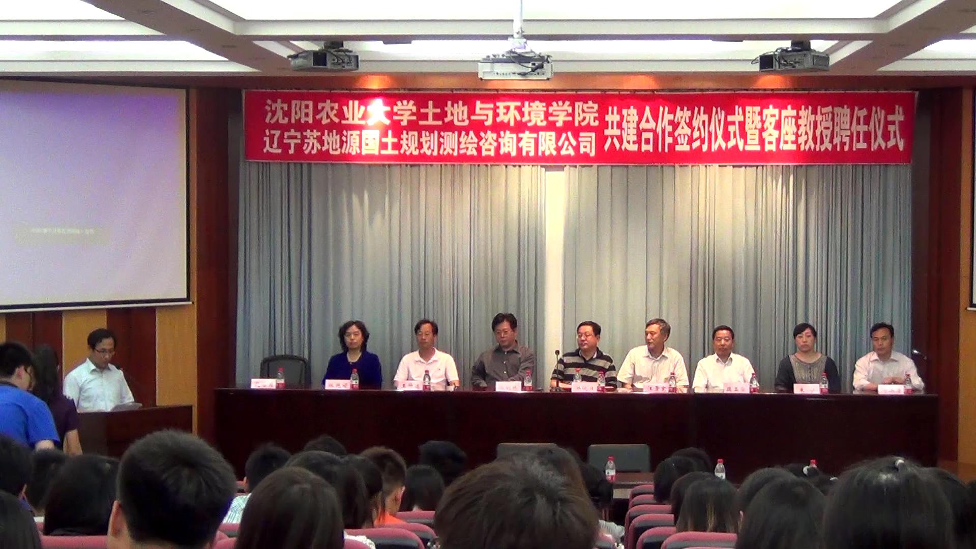 仪式上,院长汪景宽教授、苏地源董事长丛明珠先生代表双方签约,汪景宽院长向丛明珠先生授予客座教授聘书,并发表讲话。最后,丛明珠董事长作了题为“辽宁沿海经济带国土规划”的学术报告。