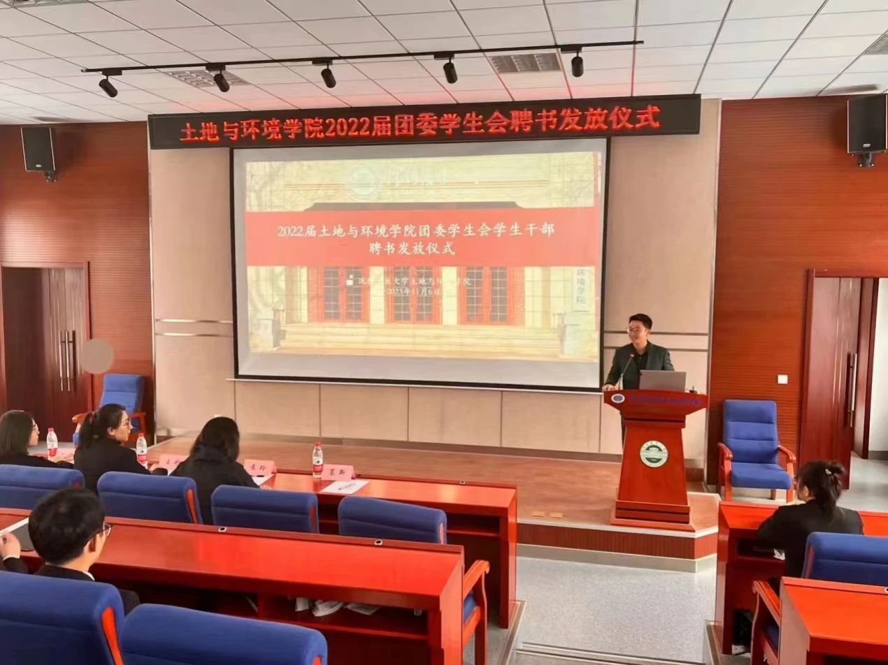 2023年11月6日12:00,在williamhill英国土壤楼A座226会议室进行2022届团委学生会的聘书发放仪式。党委副书记袁玲老师、团委书记王彤老师、辅导员葛新老师、文泊苏老师、2022届团委学生会学生干部、2023届团委学生会学生干部出席本次会议。会议由乐天宇同学主持。