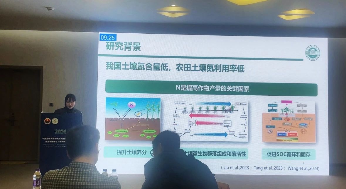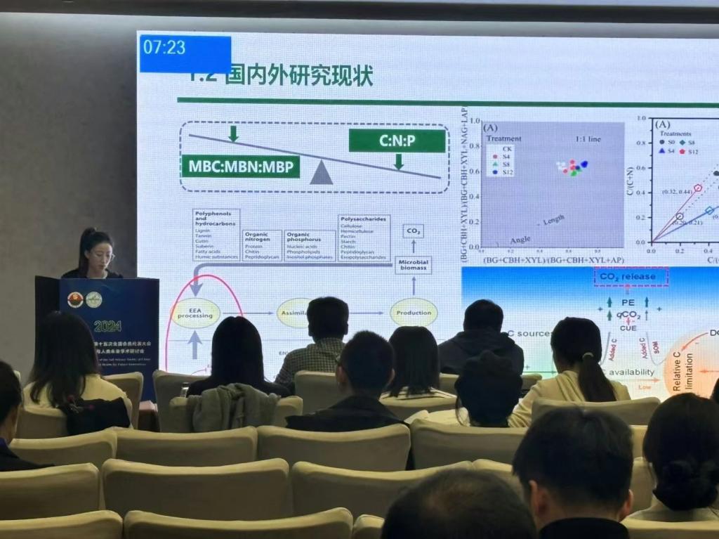 我院教师范庆锋、丁凡、董利利、张国显、安晶、张勇勇、张慧、韩艳玉、李雪在土壤工程新技术与应用展望、土壤环境中残膜和微纳塑料的赋存现状、碳中和与全球变化、植物-土壤-微生物互作与农业绿色发展、加强盐碱地综合利用,推动盐碱地质量产能提升、新型肥料与农业绿色发展等专场作了报告;博士后刘光岩、刘斌、曾能得在碳中和与全球变化、新型肥料与农业绿色发展、耕地污染修复与安全利用等专场作了报告;研究生方毅、高艳阳、李博文、李金、刘瑶岑、潘越、谭婷婷、祝腾霄在研究生专场作报告。其中董利利和刘斌参加了墙报展示,硕士生方毅荣获研究生专场学术研讨会优秀报告荣誉称号。