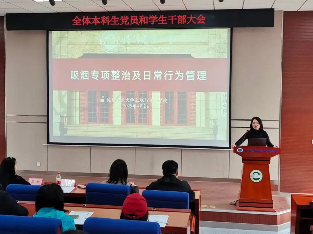 会上,袁玲副书记就校园吸烟专项整治与文明习惯养成教育强调:“党员、学生干部应以身作则,争当文明校园建设的模范先锋。”她说,此前学院辅导员已经分别对各年级同学明确了校园教学楼、宿舍楼、图书馆、学科楼以及校园甬路严禁吸烟的有关规定。本次专门召开党员、学生干部大会,一方面希望大家带头发挥表率作用,另一方面希望大家影响并督导身边的同学遵规守纪,共同营造风清气正的清朗校园。